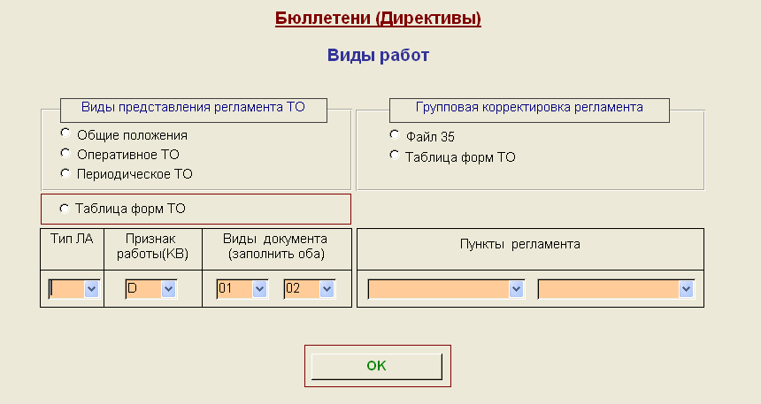 формирования комплекта выходных документов по ТОиР АТ, предусматривающих