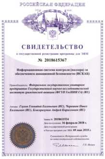 Свидетельство о регистрации программы информационной системы контроля за обеспечением авиационной деятельности